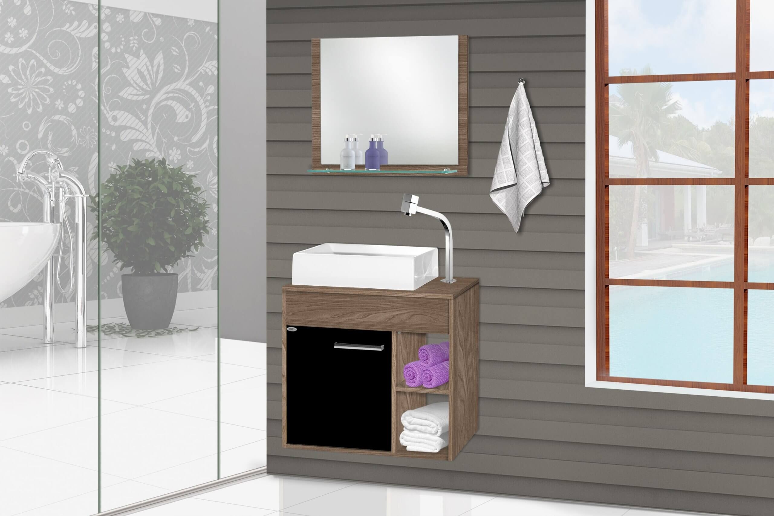 Espelheira com aparador de vidro